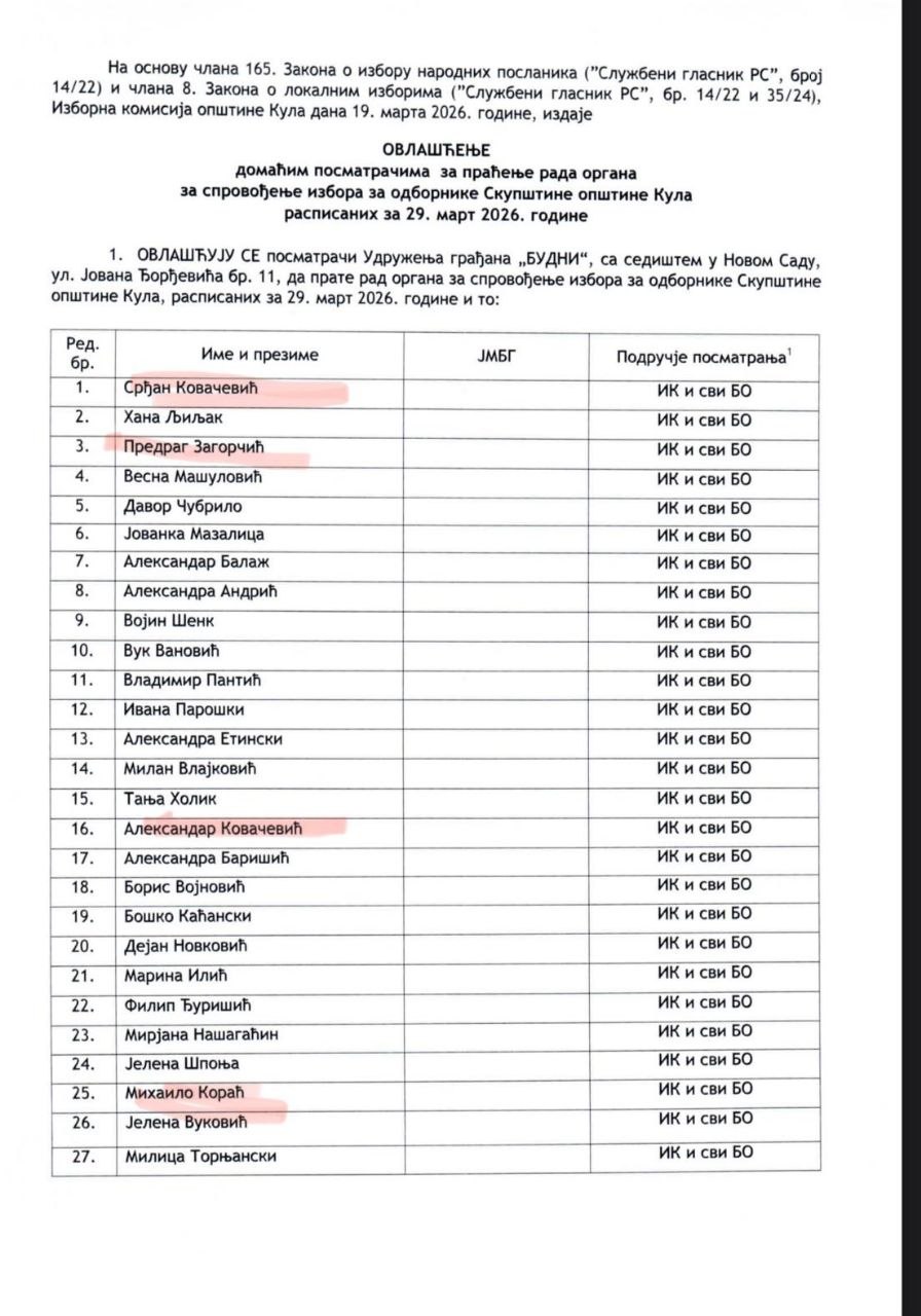 БУЋКУРИШ ИЗБОРНИ ПОСМАТРАЧИ У КУЛИ – ОД ОПТУЖЕНИХ ЗА РУШИТЕЉЕ УСТАВНОГ ПОРЕТКА, ОПОЗИЦИОНИХ ПОЛИТИЧКИХ АКТИВИСТА, АНАРХИСТА, БИВШИХ СУДИЈА ДО ВИШЕ МАЊИХ ПРЕКРШИЛАЦА